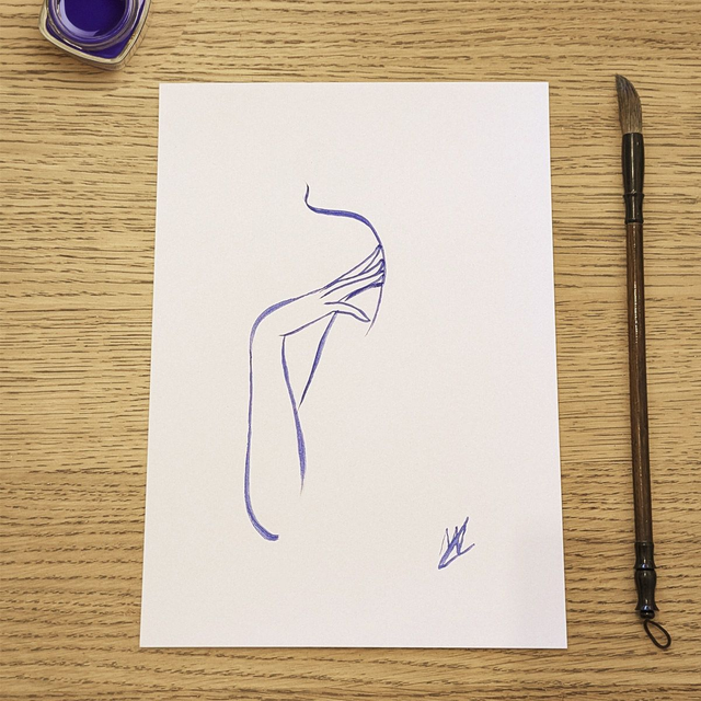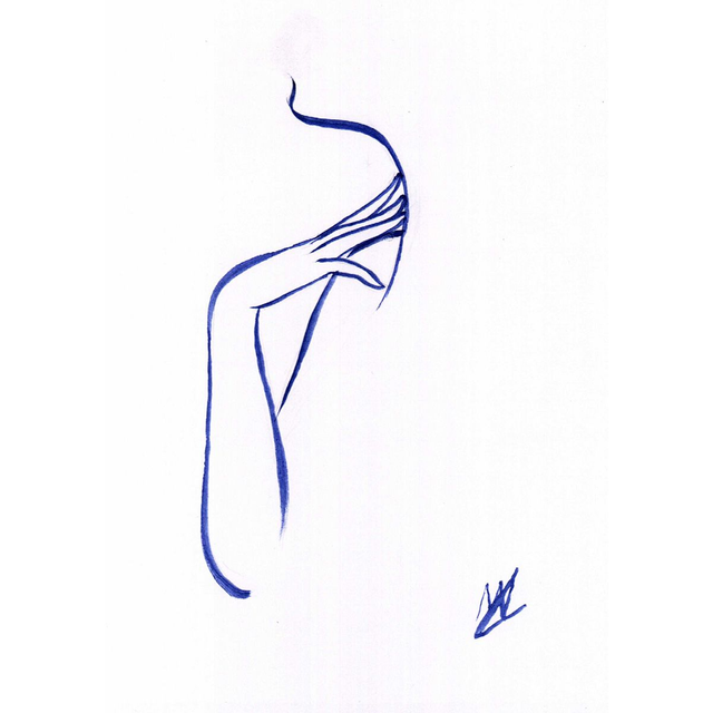 Œuvre originale à l'encre de chine bleue de Prusse.