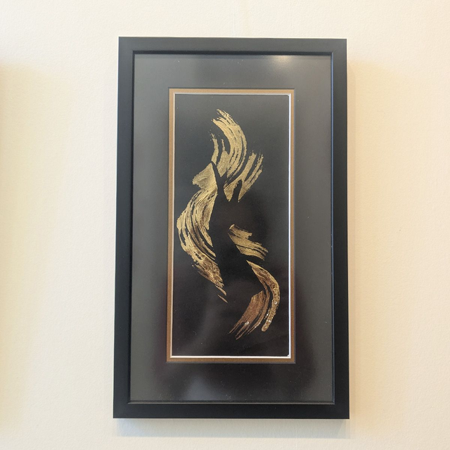 Cadre noir avec son double passepartout noir et or et sa vitre anti reflets.